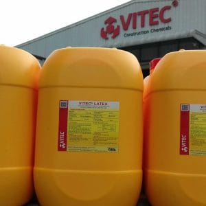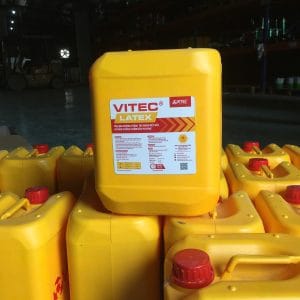 - VITEC LATEX là loại phụ gia dạng lỏng được trộn với vữa và bê tông nhằm tăng tính chống thấm, gia tăng kết dính và độ bền; làm tăng chất lượng của vữa xi măng như vữa trát mỏng, vữa sàn, vữa sửa chữa bê tông, vữa chống ăn mòn, vữa định vị, vữa hồ dầu kết nối.